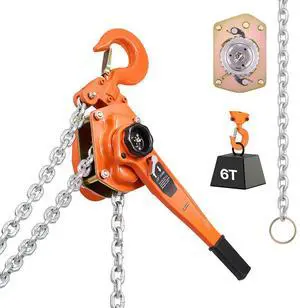 Manual Lever Chain Hoist, 6T 13200LBS Capacity Heavy Duty Come Along, 10FT Lift G80 Alloy Steel Chain With Dual Pawl Mechanical Brake,360°Rotating Hooks, for Warehouse Construction Garage