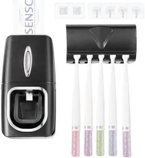 Toothbrush Holder and Toothpaste Dispenser Set, Automatic Toothpaste Squeezer Dispenser, Dispenser Toothpaste Squeezer Kit, Wall Mounted Bathroom Accessories (Black)