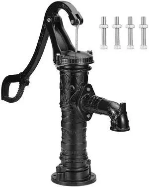 Antique Well Hand Pitcher Pump, 22ft Maximum Lift, Cast Iron Manual Hand Water Pump with Ergonomic Handle NPT1-1/4" Easy Installation, Old Fashioned for Outdoor Home Yard Garden Pond Farm, Black