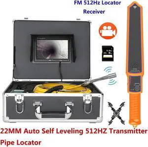 7" Monitor DVR Sewer Pipe Inspection Video Camera with Auto Self Leveling 512HZ Pipe Locator 22MM IP68 HD 1000TVL Camera 12PCS LED Lights Cable Length 40M