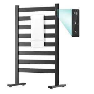 Heated Towel Rack for Bathroom, Smart Electric Towel Warmer, Timer, Fast Heating, Constant Temperature, Plug-in/Waterproof, Black, 8 Bars (Freestanding with Pulley Stand)