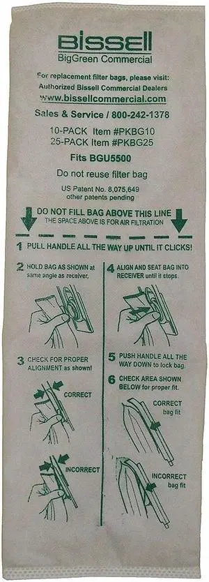 BISSELL COMMERCIAL PKBG25 Vacuum Bag, Multi-Ply, Cloth Filter, 25 PK