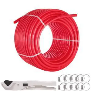 Oxygen Barrier 1/2 Inch 300 Feet Tube Coil EVOH PEX-B Pipe, for Residential Commercial Radiant Floor Heating, Red
