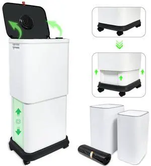 13 Gallon Trash Can with Lid, 25-45 L Altitude Variable Bin, Garbage Can with Wheels for Kitchen, Bathroom, Bedroom, Office, Two Space-Saving Small Waste Bin and Garbage Bag