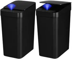 2 Pack Bathroom Trash can,Smart Touchless Trash Can,Automatic Motion Sensor Trash Bin with Lid,2.4 Gallon Garbage Can, Kitchen, Bathroom, Office, Bedroom Trash can (Black+Black)