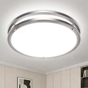13 Inch Flush Mount Ceiling Lights with Remote, 24W Dimmable LED Ceiling Light with Nightlight and Timer, 3000K-6500K Adjustable Brushed Nickel Light Fixture for Bedroom Kitchen Bathroom