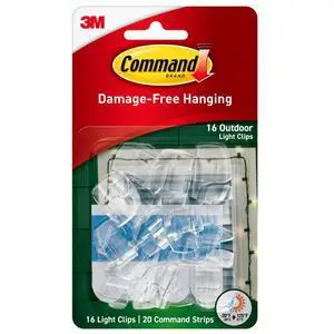 Outdoor Light Clips, 16 clips, 20 strips, Water-Resistant Adhesive (17017CLR-AWES), Clear (17017CLR-AW-E)