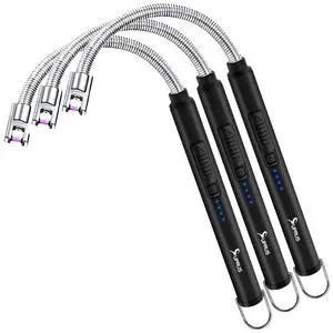 Electric Candle Lighter USB Type C Rechargeable Lighter Steel Shell & Hanging Hook with 360° Flexible Neck(Black, 3)