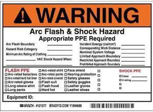 BRADY 121077 Arc Flash Protection Label,5 In. H,PK5, 121077