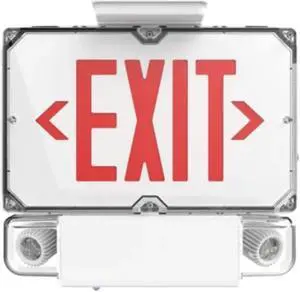 Hubbell Dual-Lite Dynamo Combo DYNCDRW12-06L Industrial Lighted Exit Sign, Long-Life Iron Phosphate Battery, Red Letters White Finish, Double Face
