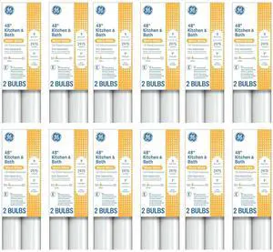 (24 bulbs) GE 66829 Kitchen & Bath Straight Fluorescent T8 Light Bulb, 32 Watt, 2900 lumens, 3000K Warm White, 48 inch T8 lamp