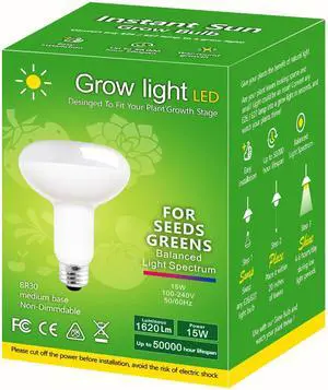 Grow Light Bulbs, Briignite LED Grow Light Bulb BR30 Bulb, Plant Light Bulbs E26 Base, 15W Grow Bulb 200W Equivalent, Grow Light for Indoor Plants, Seed Starting,1Pack