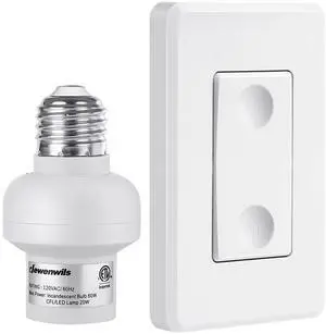 Remote Control Light Bulb Socket, Wireless Light Switch for Pull Chain Light Fixture, Remote Light Socket E26 E27 Bulb Base with Wall Mounted Wireless Controller, No Wiring, ETL Listed