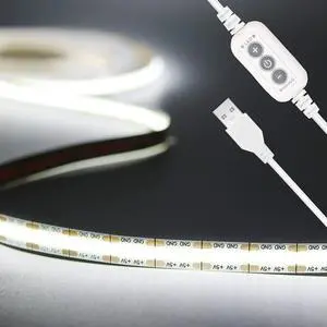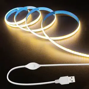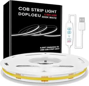 5V USB LED Strip Light 6.56ft/2m, 640LEDs 1200lm Dimmable COB LED Strip 6000K Daylight White CRI90+ USB Powered Backlight for Sewing Machine,Mirror, Cabinet, Wardrobe, DIY Lighting Project