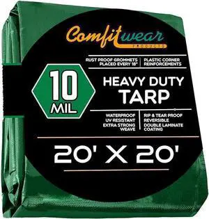 COMFITWEAR Green And Black 10 Mil Super Heavy Duty Tarp Cover, Reinforced Grommet, Multi-Purpose Pool Cover, Boat Tarp Camping Tarp, UV Resistant,Waterproof Tarp Cover ( 20' x 20')