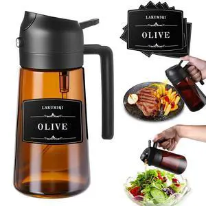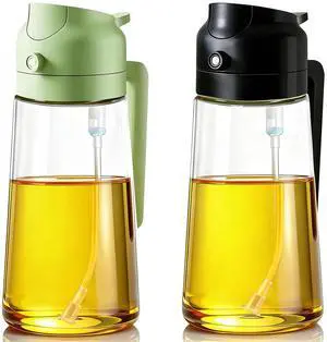 2-in-1 Olive Oil Sprayer for Air Fryer 16oz Glass Oil Dispenser & Cooking Oil Mister Spray & Pour Bottle, Non-Aerosol, Leak-Resistant, for Salad, BBQ, Kitchen