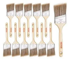 Paint Brushes, 12 Piece Angle Paint Brush, Treated Wood Handle, Paint Brush Set for All Latex and Oil Paints & Stains, Wood Stain Brushes for Cabinets, Walls, Fences, Interior & Exterior Use