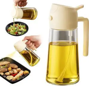 2 in 1 Olive Oil Sprayer & Dispenser Bottle 470ml/16oz Glass Spray and Pour Oil Bottle for Cooking, Air Fryer, Salad, BBQ Kitchen Gadgets & Accessories (White)