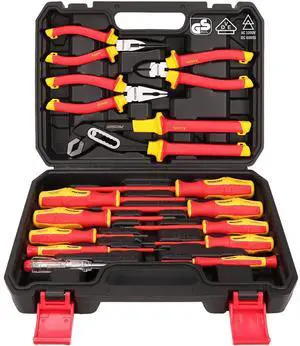 Insulated Screwdriver & Pliers Set: 14-Piece VDE Insulated Set 1000V Insulated Electrician Tool Set with Magnetic Phillips, Slotted Screwdrivers and Insulated Pliers