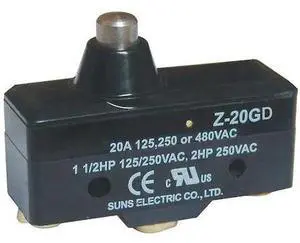 ZORO SELECT 5JEE9 Snap Action Switch, Plunger, Short Actuator, SPDT, 20 A at