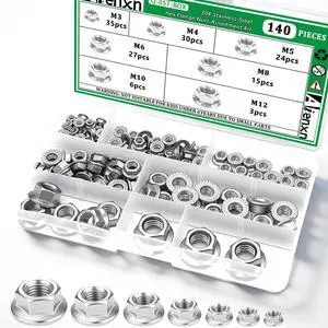 140PCS 7 Metric Sizes 304 Stainless Steel Hex Flange Nuts Assortment Kit -M3, M4, M5, M6, M8, M10, M12