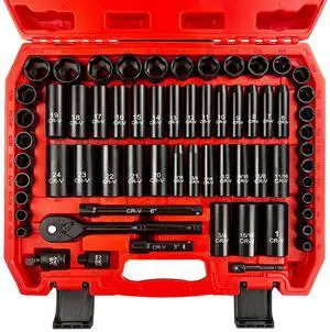 64pcs 3/8" Socket Set,Drive Impact Socket Set, SAE/Metric, Deep & Shallow, Cr-V Steel, 6 Point with Adapters, 72T Ratchet Handle, Extension BarsBit Adapter6-24mm5/16-1 inch