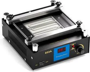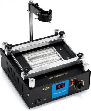 853A BGA Rework Station Preheating Oven Hot Plate, 110 V 450 W, Digital PCB Preheater Welder Soldering 50400 °C, Anti-Static Work Surface, PID Constant-Temp Control with Hot Air Gun Holder