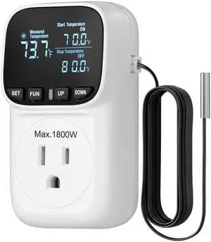 Digital Temperature Controller, Heavy Duty 15A/1800W Thermostat Outlet Plug, VA Display Heating Cooling Control Timer, -40~210, Cyclic Timing/Countdown, for Greenhouse Incubator Homebrew