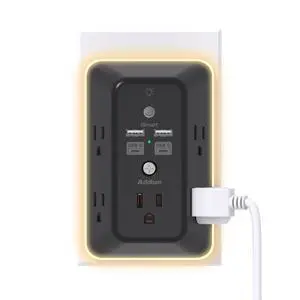 Surge Protector, Outlet Extender with Night Light, Addtam 5-Outlet Splitter and 4 USB Ports(2 USB C), USB Wall Charger Power Strip, Multi Plug Wall Outlet for Home, Office, School, Black