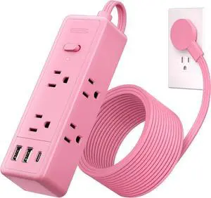 NTONPOWER Pink Extension Cord 10 ft, 1080 Joules Surge Protector Power Strip with 6 Widely Outlets 3 USB (1 USB C), Flat Plug Extension Cord Power Strip Long Cord for Home Office Dorm Room Essentials