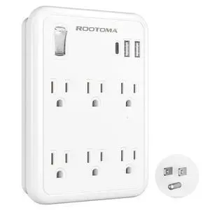 USB Wall Outlet Extender with On Off Switch, Surge Protector Outlet,6 AC Multi-Plug with 3 USB Ports (1 USB C), 490 Joules, Flat Socket Splitter with Spaced Outlet for Home, Office, College
