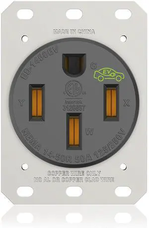 50 Amp EV Charging Receptacle, NEMA 14-50R EV Power Outlet, 125/250 Volts, Ideal for Electric Vehicles, RVs, and Large Appliance, ETL Listed.