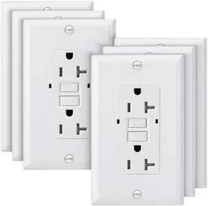 Bates- Self-Test GFCI Outlet 20 Amp, 6 Pack, 20 Amp GFCI Outlet White with LED Indicator and Wall Plate, UV-Resistant, UL Listed