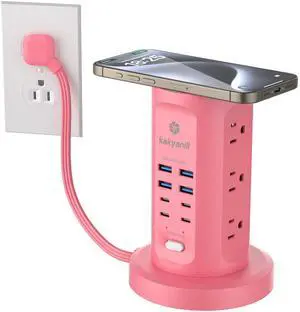 USB Wall Charger, Surge Protector, 6-Outlet Extender with 3 USB Charging Ports (1 USB C) and Night Light, 3-Sided Power Strip with Adapter Spaced Outlets - WhiteETL Listed, Gray