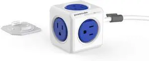 Allocacoc, PowerCube |Extended|, 5 outlets, 5 feet cable, Mounting dock, Surge Protection, Childproof Sockets, ETL Certified (Blue)
