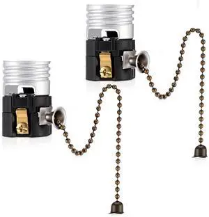 2 Pack 2 Way Lamp Socket Replacement Incandescent Lamp Holder with 6" Nickel Plated Chain (On/Off), 2-Circui Light Socket Repair Parts, Medium Base Parts for Table, Floor Light(Bronze)