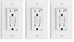 3 Pack GFCI Outlet 15 Amp with Thinner Design, Weather Resistant (WR), Self-Test GFI Receptacles with LED Indicator, Wall Plates and Screws Included, Indoor or Outdoor, ETL Listed, White