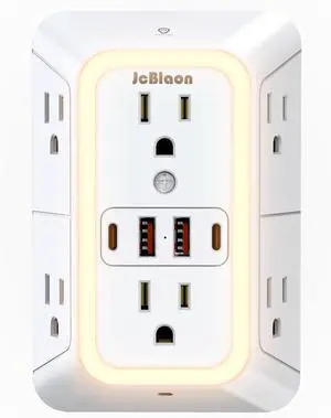 JcBlaon Outlet Extender Surge Protector - 6 Outlet Splitter with 4 USB Ports (2 USB C), Multiple Plug Expander Wall Charger, 3 Sided Multi Plug Wall Adapter Power Strip for Home Office Kitchen Travel