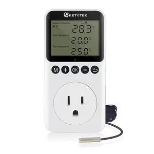KETOTEK Digital Day/Night Temperature Controller 120V, Thermostat Outlet Plug with Timer, Thermostatic Outlet Switch 110V with 3m Sensor for Reptile Terrarium Greenhouse, Heating/Cooling Temp Control