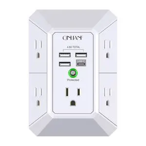 Wall Charger, Surge Protector, 5 Outlet Extender with 4 USB Charging Ports (4.8A Total) 3-Sided 1680J Power Strip Multi Plug Adapter Spaced for Home Travel Office (3U1C)