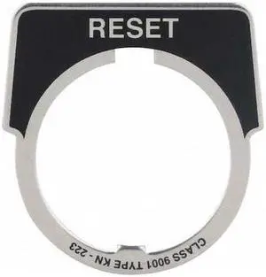 SCHNEIDER ELECTRIC 9001KN223 Legend Plate,Reset,Silver/Black