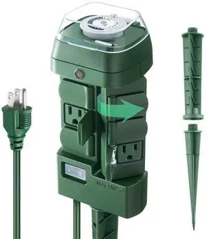 Outdoor Stake Timer Waterproof, 24 Hour Mechanical Power Strip Timer with 6 Outlets(3 180° Rotatable), 6ft Extension Cord Yard Stake Timer for Outdoor Christmas Lights, Heavy Duty, UL Listed