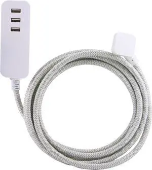 Cordinate Designer 3-USB Charging Extension Cord with Surge Protection, Gray, Braided Décor Fabric Cord, 10 ft, Low-Profile Plug, 3.4A USB Charging Ports for up to 40% Faster Charging, 37920