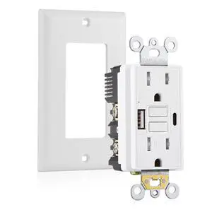 • NEMA Configuration: 15 amps, type_a_2pin_na, 15 Amp GFCI Outlet with USB Type-C and Type-A