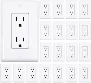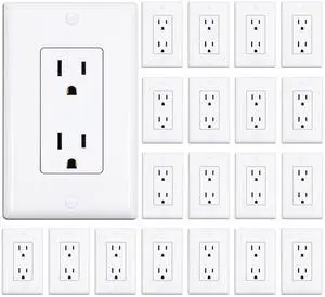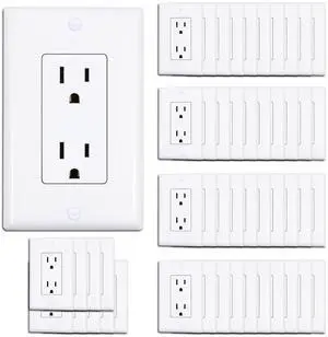 Decorator Receptacle Outlet with Wall Plate, Non-Tamper-Resistant Electrical Outlet, 15 amp Outlet, Self-Grounding, UL Listed, White (20 Pack)