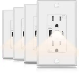 USB Outlet with Night Light Fast Charge - 4.8A USB Electrical Outlet, 15 Amp Receptacle Outlet with Type C Port Tamper Resistant Receptacle Wall Plate Listed for Kitchen Bathroom (4-Packs)