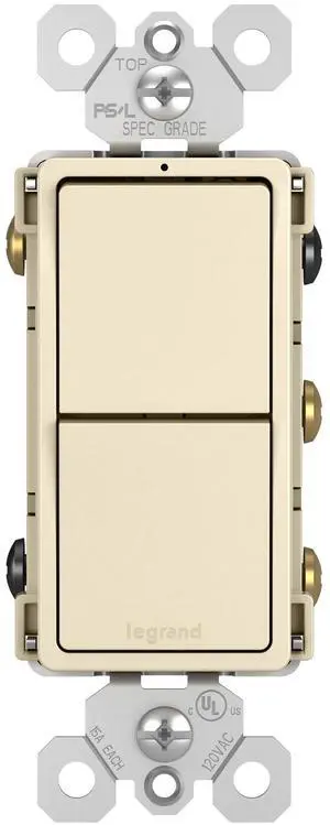 Legrand radiant RCD33LACC6 15 Amp Combination 2-in-1 Decorator Rocker Light Switch, Two 3-Way Switches, Light Almond (1 Count)