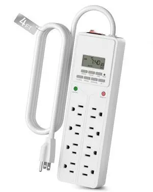 8 Outlet Surge Protector with 7-Day Digital Timer (4 Outlets Timed, 4 Outlets Always On) - White