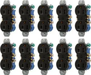 (case of 10) Eaton Wiring 4270BK 15 Amp 125V Duplex Receptacle Outlet, black, no ears, 3 wire, 2 pole