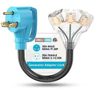 30 Amp to 110V RV/Generator Distribution Adapter Cord, NEMA TT-30P Male to 3X 5-15R/5-20R T-Blade Household Outlet Female with LED Power Indicator 3750W
